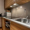 L’appartamento si compone di un ampio soggiorno con divano letto e armadio a muro, una camera matrimoniale, dalla quale si accede ad un piccolo liagò, due bagni, uno con la doccia e l’altro con vasca e un cucinotto dotato di forno a microonde, piano cottura ad induzione, lavastoviglie e frigorifero.